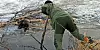 Så langt hadde våren vært kald. To dager med finvær gjorde imidlertid sitt til at aktiviteten økte, og vi fant spor. Ikke på de plassene vi kjente til fra tidligere, men nesten fem kilometer lenger opp i elva. Egentlig litt rart, for det var da vitterlig mye mat igjen på plassen vi hadde observert der under tidligere jakter. Trolig måtte dette være en annen familie. En sur vind den tredje dagen satte en stopper for videre postering. Er det noe beverne ikke liker, i tillegg til kuldegrader, er det urolig vær med sluddbyger. Når det blåser, har jeg flere ganger observert at dyra har blitt utrygge og trukket inn i hulen sin igjen. Bare i kortere perioder har de vært ute.