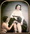 Frisørtime: Kvinnene på 1800-tallet hadde aldri hørt om bikinilinjen, men litt trimming og frisering hørte likevel med, som vi ser. Håndkolorert daguerrotypi fra 1850.INA