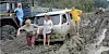 Disse bildene er fra august 2006, da om lag 600 biler sto fast i gjørma. Det er ikke slik at et dusin kraftbiler fra nærmeste bilredingstjeneste kommer ilende til. Nei, her får man klare seg selv. Det er i og for seg greit, ettersom russiske veimyndigheter aldri har tiltenkt denne veien sommertrafikk - og til og med advarer mot sommerkjøring.