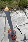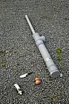 Noen rørbiter og en porsjon nevenyttighet, startgass, peislighter og en sekk poteter er alt som skal til. Potetene sendes mange hundre meter av gårde med stor kraft.
