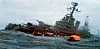 Torpedoens sprengladning på 365 kilo eksploderer i bakre maskinrom. Trykkbølgen blåser oppover gjennom to messehaller og et forsamlingsrom før den sprenger et 20 meter langt hull i dekket.
