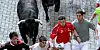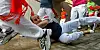 Gjengen på bildet over fikk for eksempel oksen over seg. Det var neppe noe særlig. Mange skader seg når de sklir og ramler på de glatte gatene i byen Pamplona. Oksene, som ikke vet at de løper rett inn i byens arena for tyrefekting, er svært forvirret. De klarer likevel med vill stanging å lage en bra dose kjøttsår hos ungkarene som løper foran.