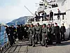 NARVIK: Den tyske jageren «Wilhelm Heidkamp» setter i land soldater og utstyr tidlig om morgenen 9. april i Narvik. Like før hadde den vært med på å senke panserskipene «Eidsvold» og «Norge». Nesten 300 nordmenn omkom.Ukjent/William Hakvaag/Lofoten Krigsminnemuseum