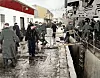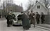 PANIKKDAGEN: I Oslo spredte panikken seg dagen etter invasjonen, da svensk radio meldte om forestående britiske bombeangrep. Alle ville vekk. De heldige hadde bil.Oslo museum/Vega forlag/kolorert av daniel voje