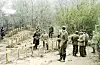 SISTE HVILESTED: Dimitterte norske soldater viser de 34 falne fra Trønderbataljonen i Gratangen den siste ære.Trondheim byarkiv/Vega forlag/ KOLORERT AV MYSTICAL GARDEN DESIGN AB