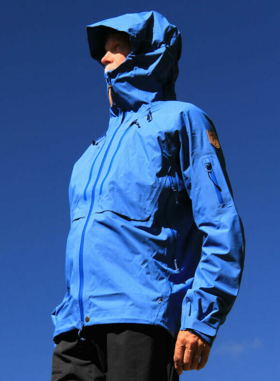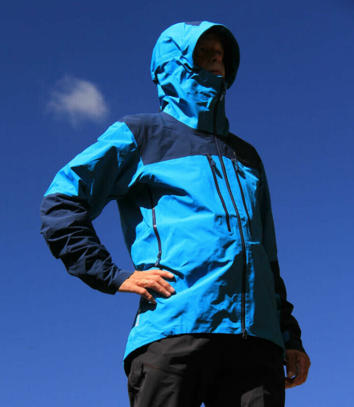 Den letteste av de solide, vanntette, fjelljakkene i Norrøna-kolleksjonen. Ei jakke som beskytter godt mot uvær. Hetta skjermer ansiktet godt, asymmetriske ermer skjermer håndbaken, jakka er lang, dekker nedenfor rumpa, og har elastisk dobbel stramming nederst. Romslig hette med god plass til solid lue. Lett å justere med en sentral regulering bak på hodet. Glidelåser/justeringer er OK med hansker. Ca 50 cm dobbel glidelås under armer/langs siden gir fleksible luftemuligheter sammen med dobbel glidelås i front. To romslige lommer som ikke er i konflikt med hoftebelte/brystreim. Innvendig glidelåslomme i den høyre. Innvendig lomme med begrenset plass på venstre side av brystet.
