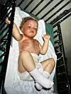De små fingertuppene klarte akkurat å røre ved koppen slik at hun brant seg på det varme vannet. I det samme veltet den. 2-åringen fikk alt vannet over seg og ble brent under haken, nedover halsen, over venstre skulder, over hele brystet og nedover den høyre armen.