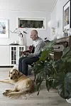 Han kommer ut fra heisen på Citybox hotell i Oslo. Han har fulgt førerhunden, Rio, opp på hotellrommet.