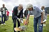 Ved Holla kirkeruin står Simonsen og ordfører Linda Thorstensen og skuer utover Fensfeltet, et boligfelt i utkanten av Ulefoss.