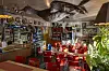 Utstoppede dyr henger fra taket. Noen står ved disken, andre på en hylle. De fleste er visstnok til salgs. Samme gjelder kanskje også for bjørneskinnet som henger på veggen ved siden av noen trestubber og en liten knivsamling. Forskjellige håndverk, utført av Helena, ligger også til salgs her og der.