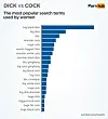 På Pornhub søker kvinner etter videoer med store peniser 46 prosent oftere enn menn. Kvinner bruke søkeordet "dick" 122 prosent oftere enn menn, og "cock" syv prosent oftere.
