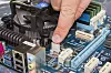 7. Trykk kjøleren på plass i de fire hullene rundt sokkelen, og plugg viften inn i kontakten merket CPU-fan.Tron Høgvold, HjemmePC