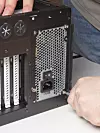 16. Legg strømforsyningen på plass. Her er strømforsyningen nederst i kabinettet, og viften skal peke ned og suge frisk luft utenfra.Tron Høgvold, HjemmePC
