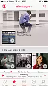 Menyen er delt opp i For deg (med hjerte, barnslig!!), Nytt, Radio, Connect og Min Musikk. Etablerte Itunes-brukere vil finne alle sine tidligere kjøp eller opplastinger av egen musikk i sistnevnte meny.