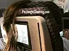 Flypassasjeren har kastet hestehalen sin over setet, og gjør det dermed umulig for personen bak å se på TV-skjermen sin.