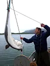 - Jeg var så nervøs at jeg fikk den bare fast i leppa, med den slet seg løs og stakk ned i dypet igjen. Jeg trodde vi kom til å miste den. Det var kaotiske tilstander om bord og bedre ble det ikke da hunden vaset seg inn i nylonen. Til slutt klarte vi å få kontroll på kveita og fikk den til båten der fikk vi storkroken i henne. Vi fikk tau gjennom gjellene og slepte den digre fisken til land. Kveita var større enn meg, og det var en enorm opplevelse å få et sånt monster av en fisk, forteller storfiskeren som fikk rundt 3000 kroner for kveita.