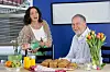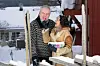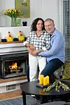 Inger Lise og Kjetil har fyrt i peisen og byr på eggerøre, laks, skinke og ferskt brød, som han har bakt. Det er lett å se at de er på godt sted i livet.