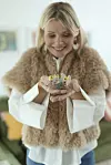 Men med myke, blonde, bølger som rammer inn det smittende smilet, og pudderrosa strikkegenser med fotsidt skjørt, er det likevel ikke helt som på julaften hjemme hos familien Gjessing Linhave. Ingrid klarer ikke å la være å gå inn i karakter som forfinet jåledame.