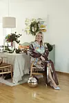 Rundt oss er stua et fargesprakende vitnesbyrd om personlig stil og lekenhet. Her finnes ingen spor av beige minimalisme, men interiørdetaljer som vibrerer av liv og farger, som får oss til å trekke på smilebåndet. Over kjøkkenskapene står alle keramikkvasene på rekke og rad som fargerike prikker over i-en.