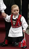 PRINS SVERRE MAGNUS: Prinsesse Ingrid Alexandra og prins Sverre Magnus var begge ikledd bunader fra Agder da de ble fotografert på Kongeskipet i 2016.Handout / Slottet / NTB scanpix
