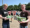 – Det er varmt, men det er jo bare fint. >Vi har øl vi, sier Daniel (22) og Peter (24), som sleper av sted med hvert sitt brett ølbokser.