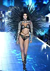 Kristiansandsjenta gikk i år sin andre visning for undertøysgiganten, og strålte iført et lyseblått blondeundertøyssett, med en gjennomsiktig overdel med fjærpryd og sølvdetaljer.
