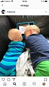 FILMKOS: For fem måneder siden ble Marit Bjørgen mamma igjen. Da ble Marius storebror til Ola. Her har hun foreviget sønnene sine som ser på film. – Mine to små, skriver hun.Faksimile Instagram