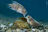 HISSIGPROPPER: To hannfisker på fire centimeter sloss om et tomt snegleskjell i Lake Tanganyika (Tanzania). De bittesmå fiskene bor i disse skjellene sammen med sin partner, og på bildet er fisken til venstre i ferd med å kaste ut den ubudne gjesten som forsøker å stjele skjellet hans. Bildet er tatt av spanske Angel Fitor og vant i klassen beste bildeserie.Angel M.Fitor-www.seaframes.com