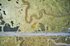 DELT PÅ MIDTEN: Dette dronebildet, tatt av spanske Javier Fuente, viser hvordan en bilvei gjennom et sump-område påvirker de naturlige omgivelsene. Veien ble bygget på 1980-tallet. Mer enn 100 ulike fuglesorter holder til i dette området. Bildet gikk til topps i klassen "det store bildet".Javier Lafuente