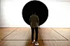 SVART MINIMALISME: En besøkende ser på et kunstverk av den britisk-indiske kunstneren Anish Kapoor som på engelsk har fått navnet «Void during Minimalism: Space. Light.» (Tomrom under minimalisme. Rom. Lys.). Dette bildet er tatt i 2018, da det var utstilt på National Gallery Singapore som ett av 150 kunstverk som alle omhandlet den minimalistiske kunstretningen.getty images