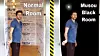 FARGEKONTRASTER: Samme rommet, ett i dagslys, ett malt med svartfargen Musou Black som er produsert av Koyo Orient i Japan. I likhet med Redemption of Vanity hevder også Koyo å ha utviklet en svartfarge enda svartere enn Kapoors Vantablack. Konkurransen er tydeligvis ikke over før noen skaper en svartfarge som absorberer 100% av alt lys. youtube.com